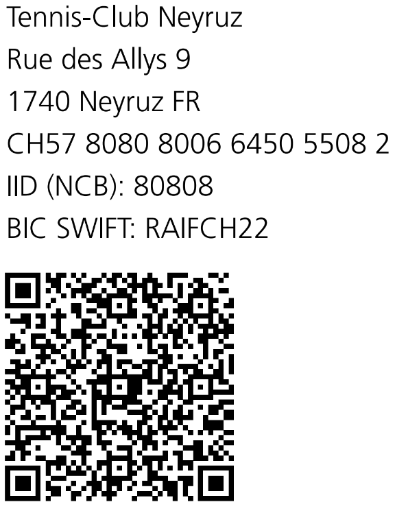 Nous vous remercions d’exécuter dans la mesure du possible vos paiements par e-banking car tout versement au guichet postal occasionne des frais supplémentaires (CHF 2.- par BV) à la charge du club.